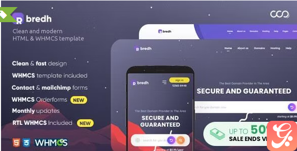 Bredh is a Clean and modern HTML & WHMCS template with a crafted and elegant design. Create your own unique hosting and domains business company and impressed all of your clients and competitors, Highly customizable code with fast load time and dozens of element to use for any company providing web hosting, reseller hosting, clouds hosting, domains, WordPress hosting, Ddos attacks protection, online support, and multi-purpose business, etc.., is fulfill with all you need to start you own hosting company, is Clean, Responsive And Modern based on Bootstrap 4.3 framework.<br/><br/>Bredh template has +15 sub-pages They fulfill all your requirements, Even if you want more you can do it easily with pre-made sections and elements