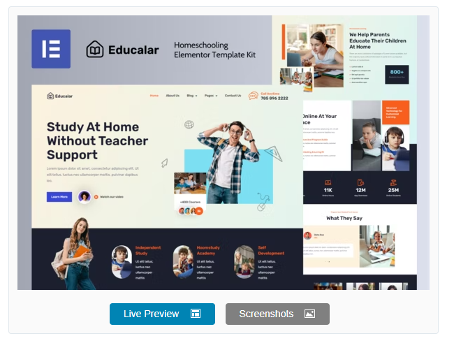 Download Educalar - Homeschooling Elementor Template Kit at cheap price:-